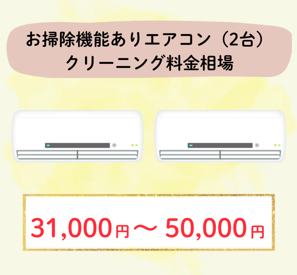 お掃除機能付きの場合、2台合計のエアコンクリーニング料金は31,000~50,000円前後と考えると良いでしょう。