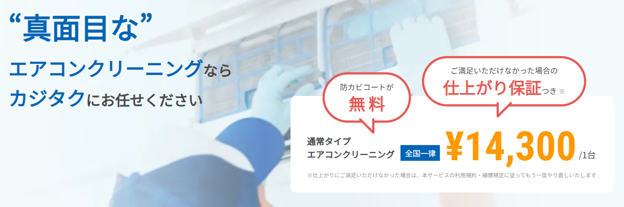 | カジタク | 防カビコーティングが無料 研修を受けたスタッフが対応 | 詳細はこちら | 8時~18時位の時間帯限定 | × |